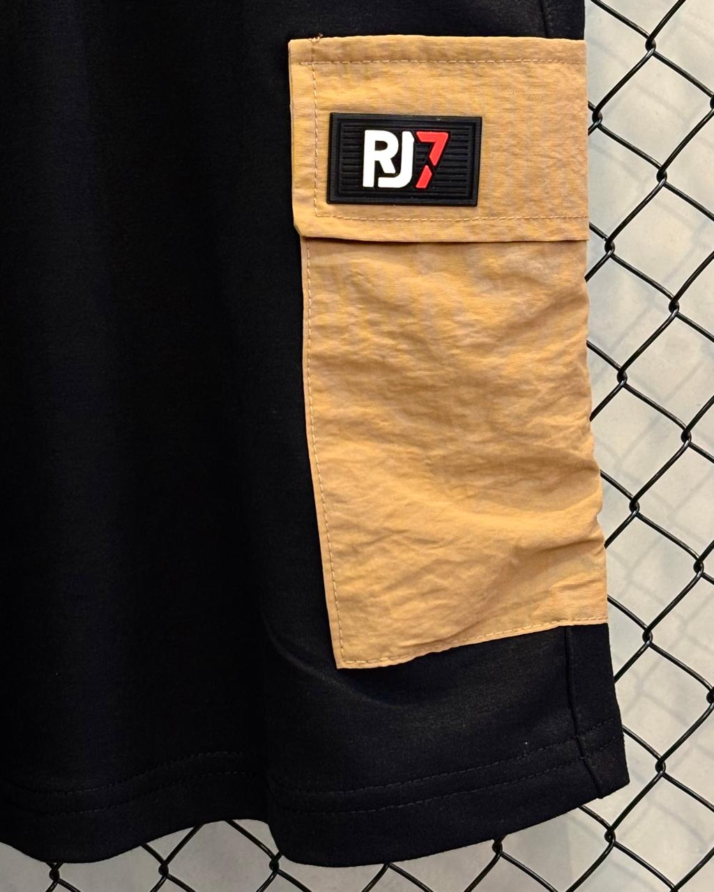 Autenticidade da Marca: O logo RJ7 é aplicado em destaque sobre o bolso cargo direito, confirmando a qualidade e o design autêntico da marca.