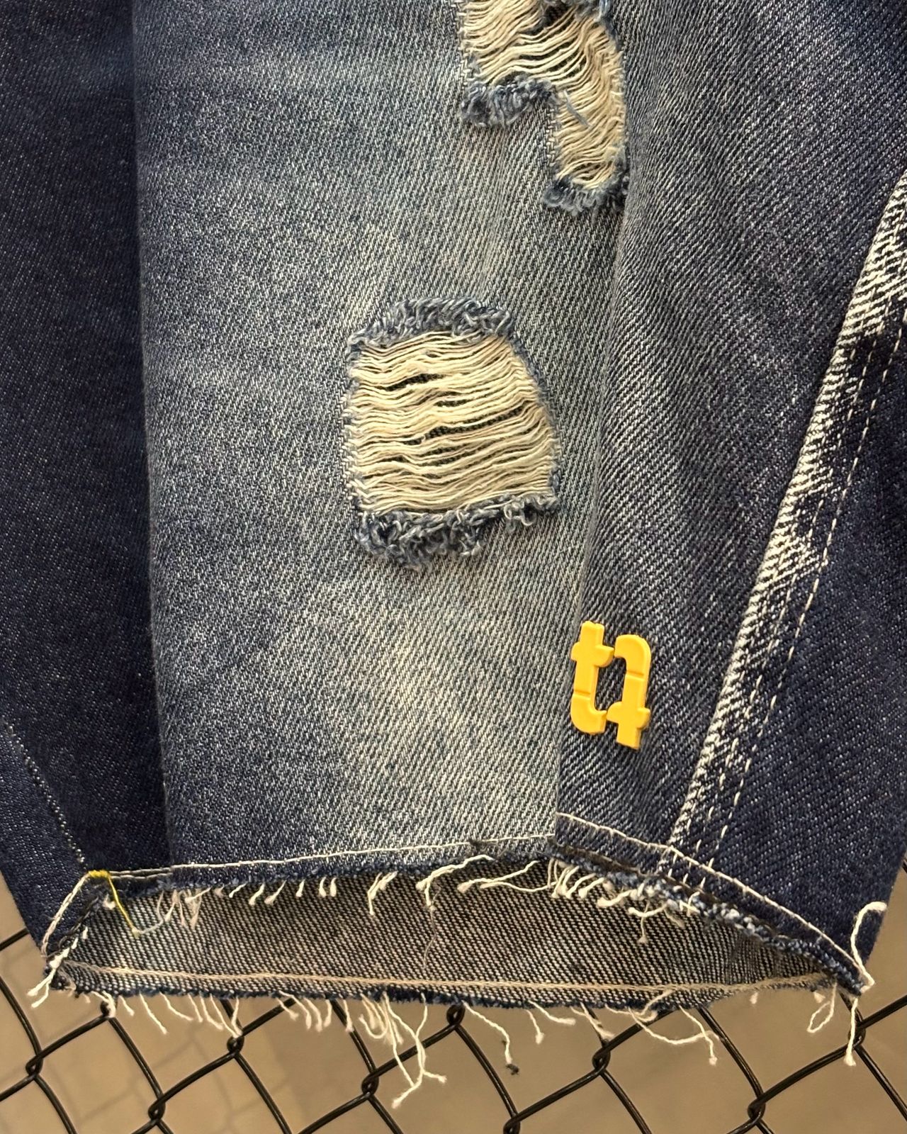 Detonados de Alta Definição: Os rasgos estilo destroyed são profundos e texturizados, oferecendo um visual despojado sem perder a integridade do tecido.
