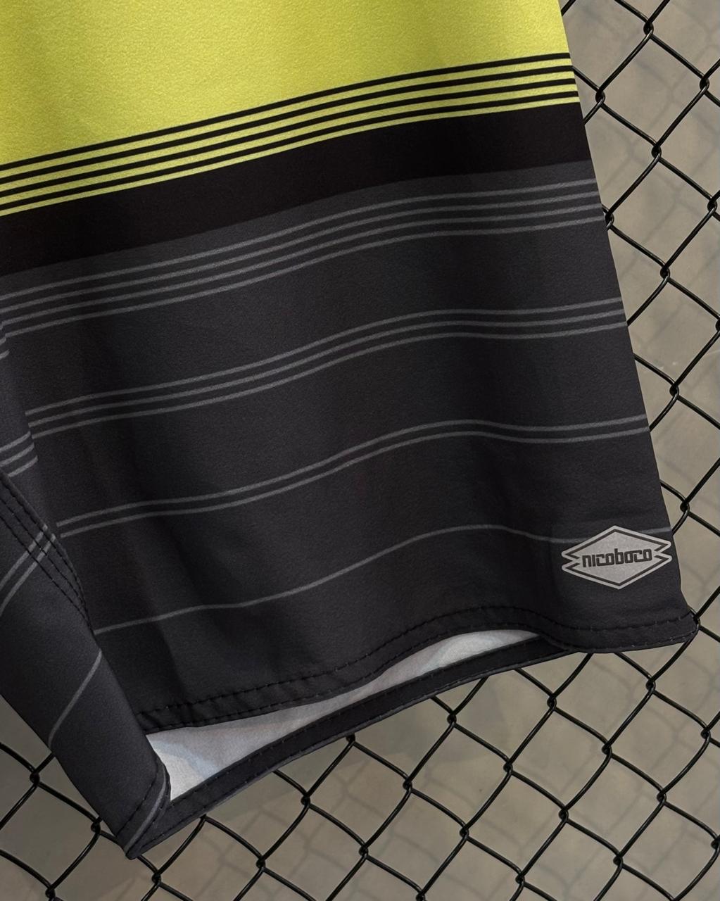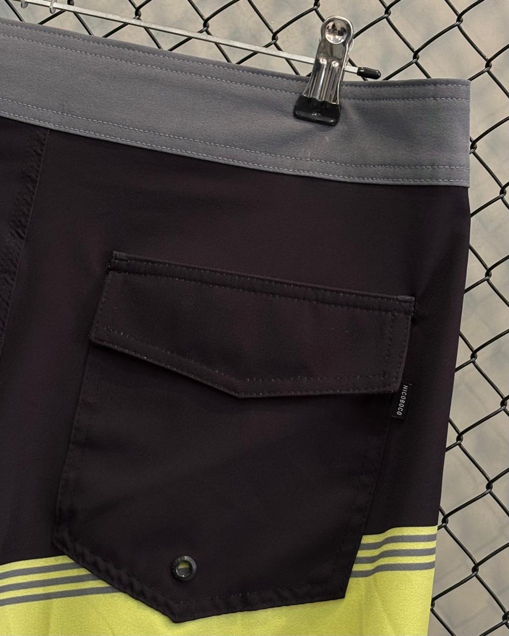 A Nicoboco apresenta um boardshort que se destaca pela sua composição geométrica e cores de alto contraste. Desenvolvida com tecidos leves e de secagem ultra-rápida, esta peça é um item essencial para quem busca funcionalidade sem abrir mão de um design arrojado.