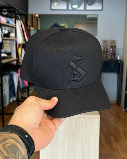 Logotipo Gótico em Alto Relevo: O icônico "S" frontal é apresentado em um aplique emborrachado com textura de couro e bordas bordadas, garantindo um relevo tridimensional que se destaca em qualquer iluminação.