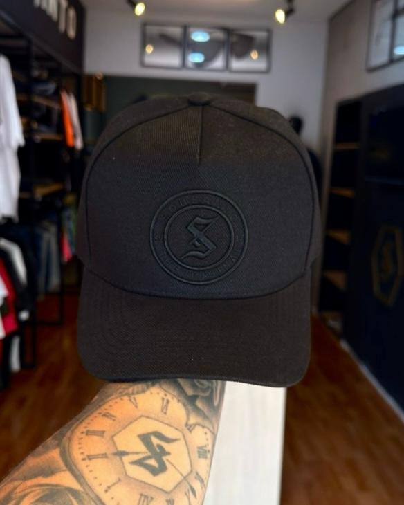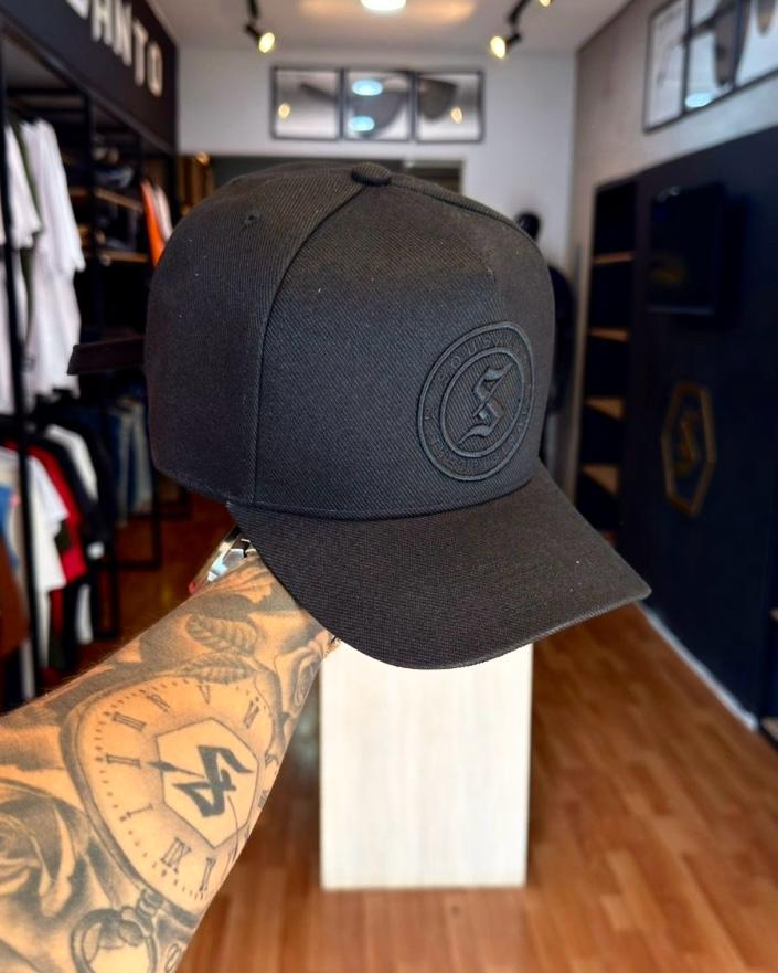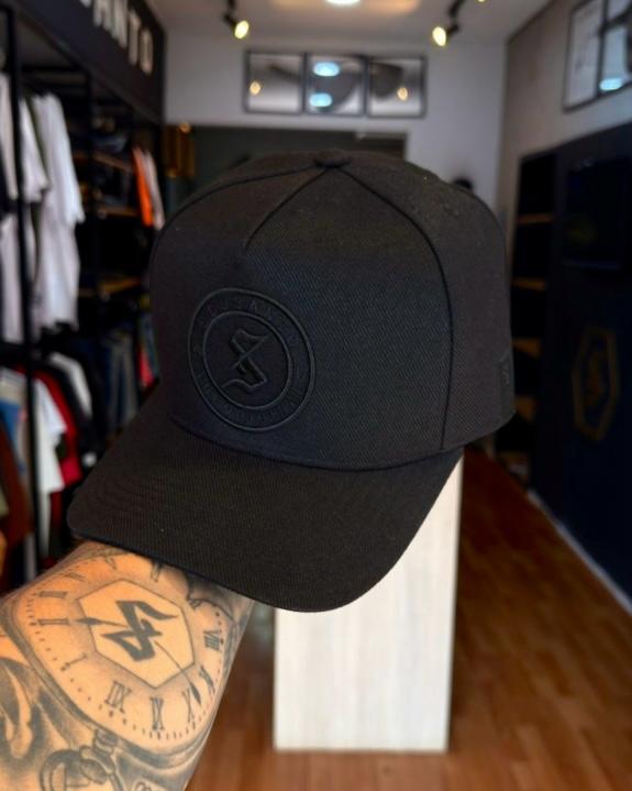 O Boné Sou Santo Monocromático redefine o conceito de básico. Com uma estética totalmente preta, esta peça foi desenvolvida para oferecer um visual sóbrio, mas extremamente sofisticado. É o acessório indispensável para compor looks que exigem uma presença forte sem esforço.
