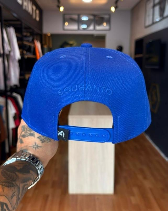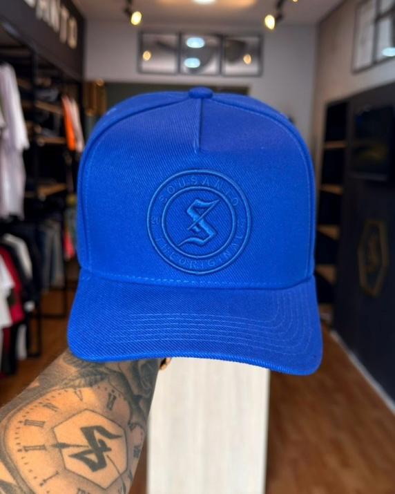 Acabamento Traseiro Exclusivo: A assinatura "SOUSANTO" aparece bordada em linha tonal na parte de trás, mantendo a coerência do design 360°.