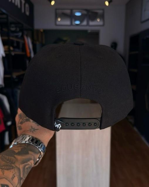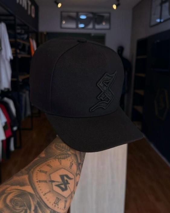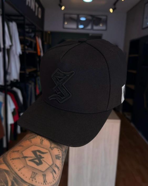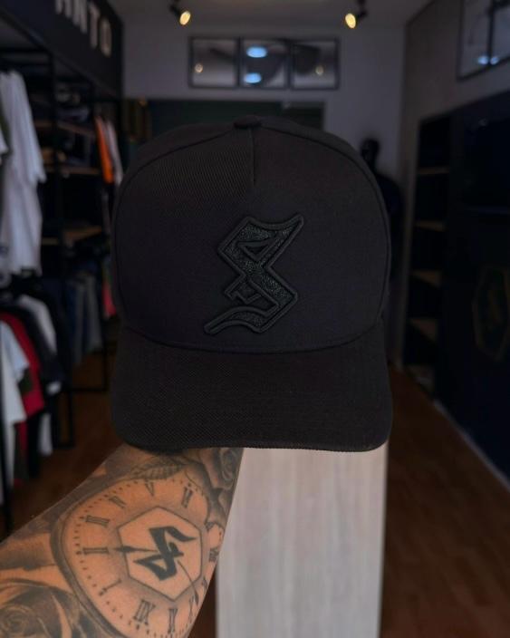 Esse boné Sou Santo não é apenas mais um acessório preto; é uma experiência visual. Desenvolvido para quem busca o equilíbrio entre o luxo e o streetwear, este modelo traz uma inovação no design: o icônico "S" gótico cravejado com partículas de glitter prensadas diretamente no material.