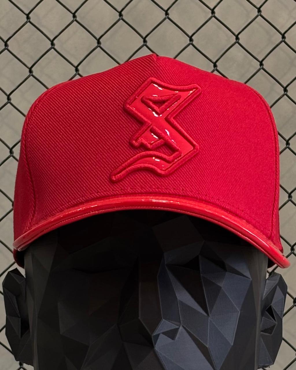 Logotipo "S" em Bordado 3D Emborrachado: O icônico "S" gótico é aplicado com um bordado de alta densidade revestido por uma camada emborrachada brilhante, criando um relevo imponente que acompanha a estética da aba.