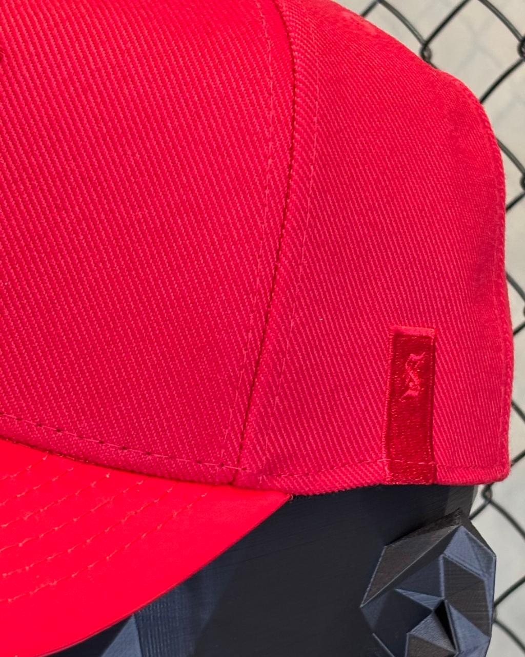 Tecido em Sarja de Alta Gramatura: O corpo do boné é confeccionado em sarja vermelha de alta resistência, proporcionando conforto térmico e durabilidade para o uso diário.