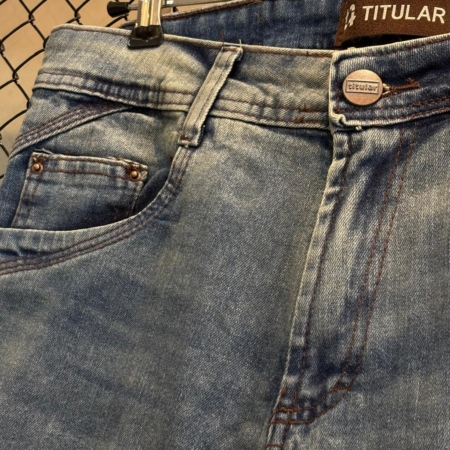 Modelagem Slim Fit: Corte levemente ajustado que acompanha as linhas da perna, proporcionando um visual contemporâneo e elegante sem restringir os movimentos.