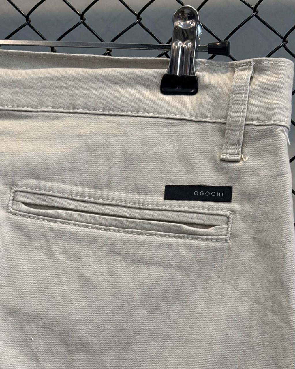 A Ogochi apresenta uma calça de sarja desenvolvida para oferecer um visual limpo e refinado. Sua tonalidade clara e neutra permite uma infinidade de combinações, tornando-a a escolha ideal tanto para um dia de trabalho quanto para um evento social ao ar livre.