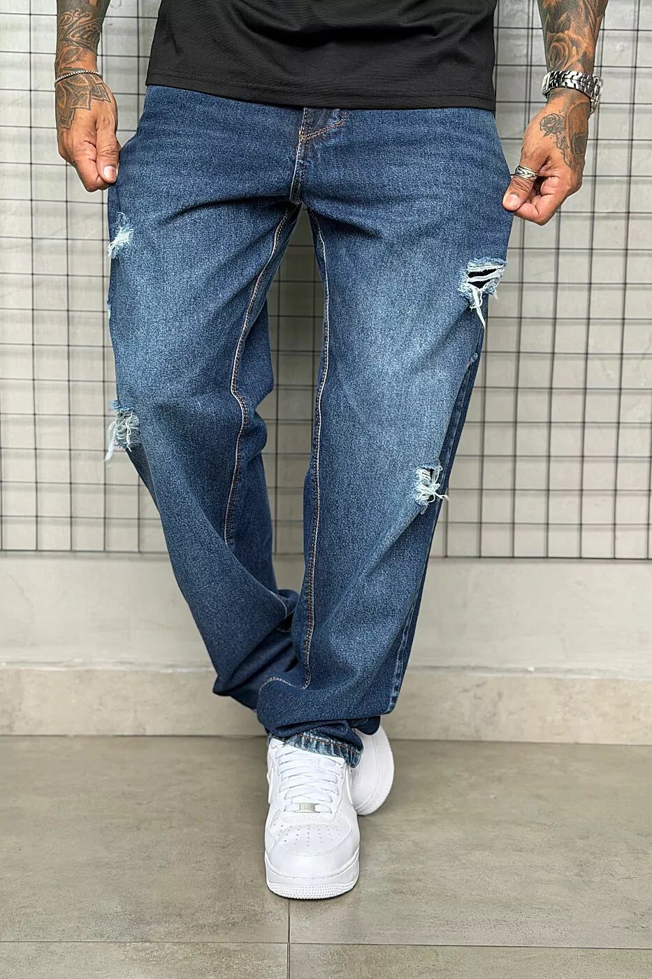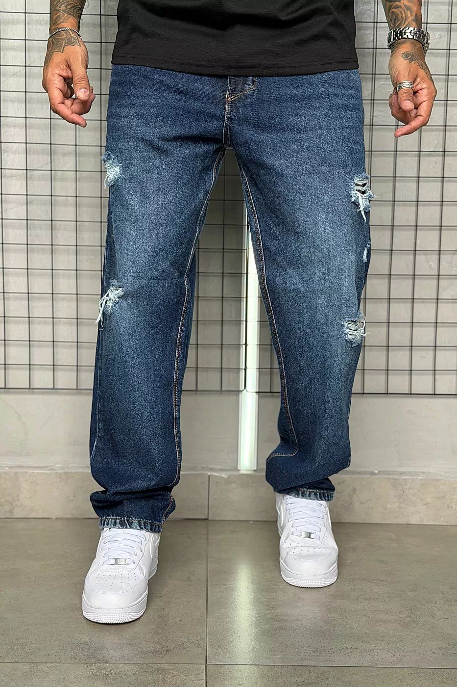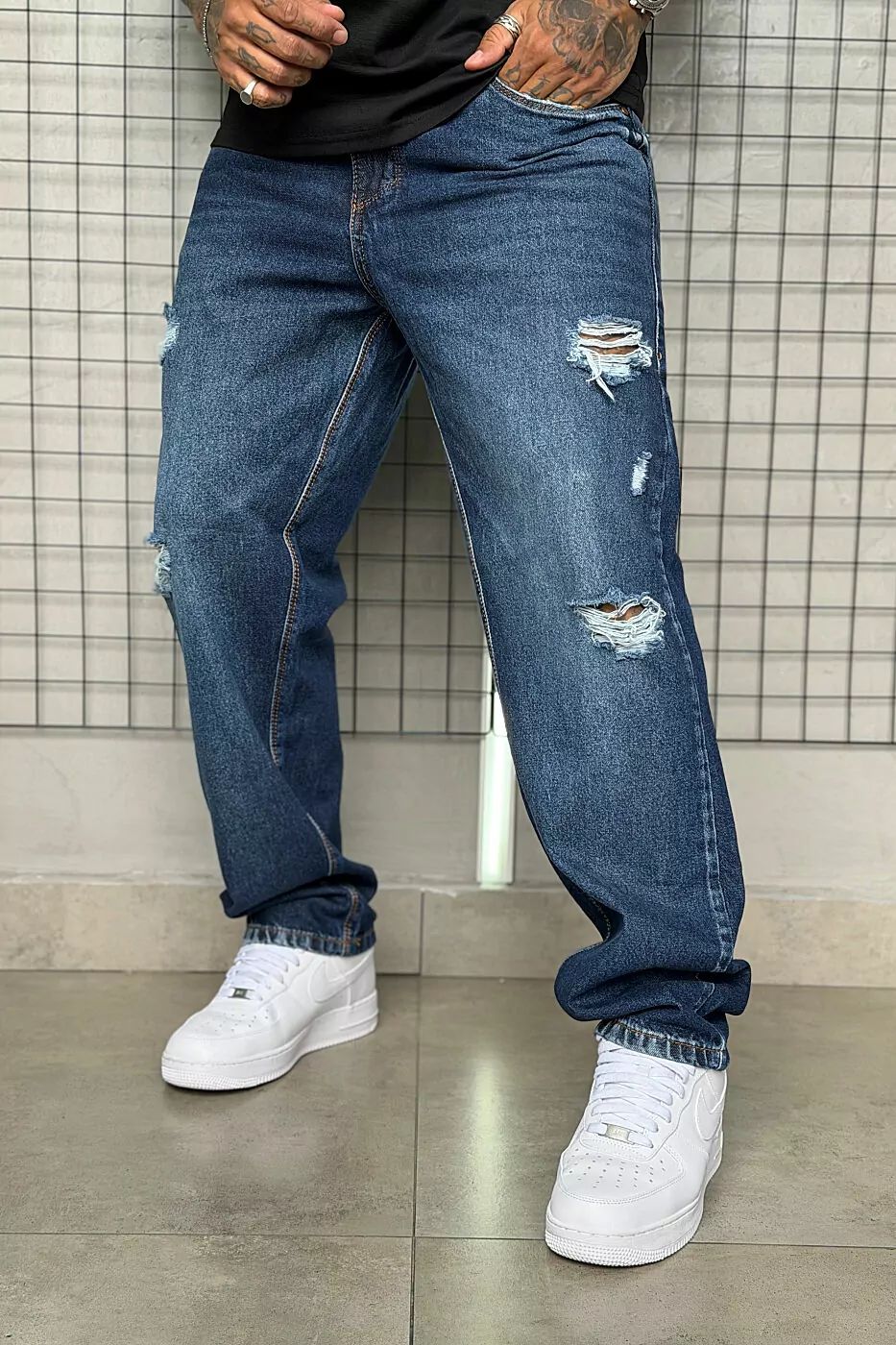 Se você procura aquele jeans que não passa despercebido, essa Calça Jay Jones é a sua melhor escolha. Com uma lavagem azul profunda e detalhes destroyed estrategicamente posicionados, ela une a resistência do jeans clássico com a ousadia da cultura urbana. É a peça ideal para quem quer um visual com personalidade e muita atitude.