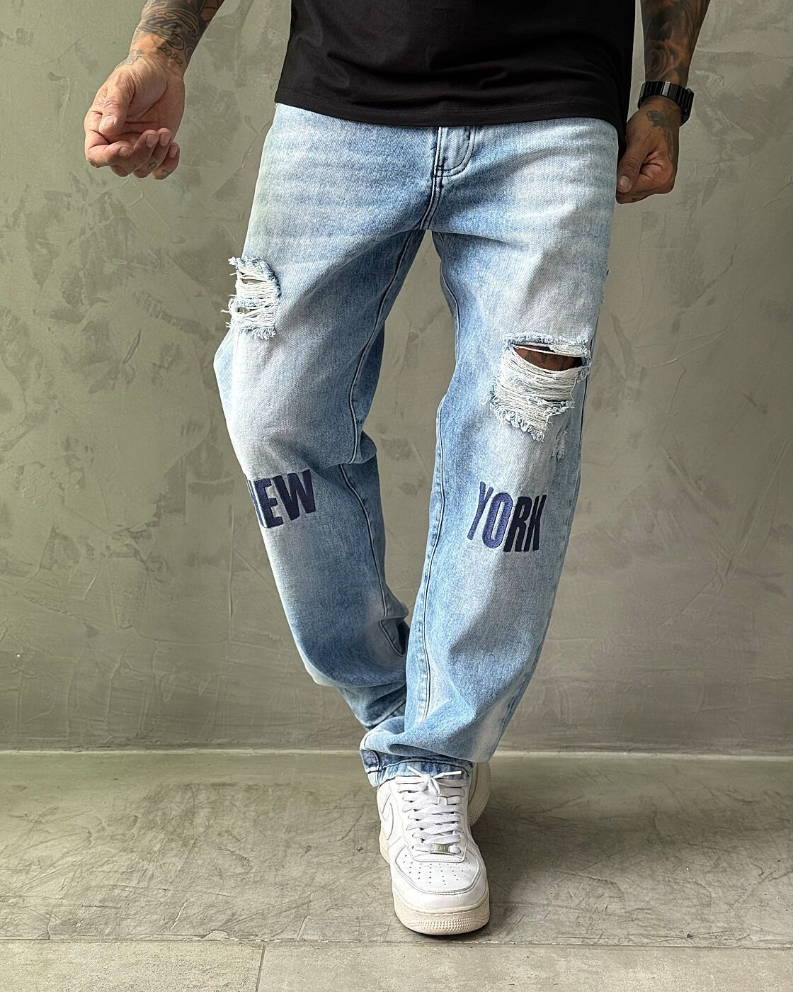 Mergulhe no streetwear com a atitude global dessa calça jeans da Jay Jones. Uma peça de corte moderno que combina o charme do denim vintage com uma homenagem marcante à cultura urbana.