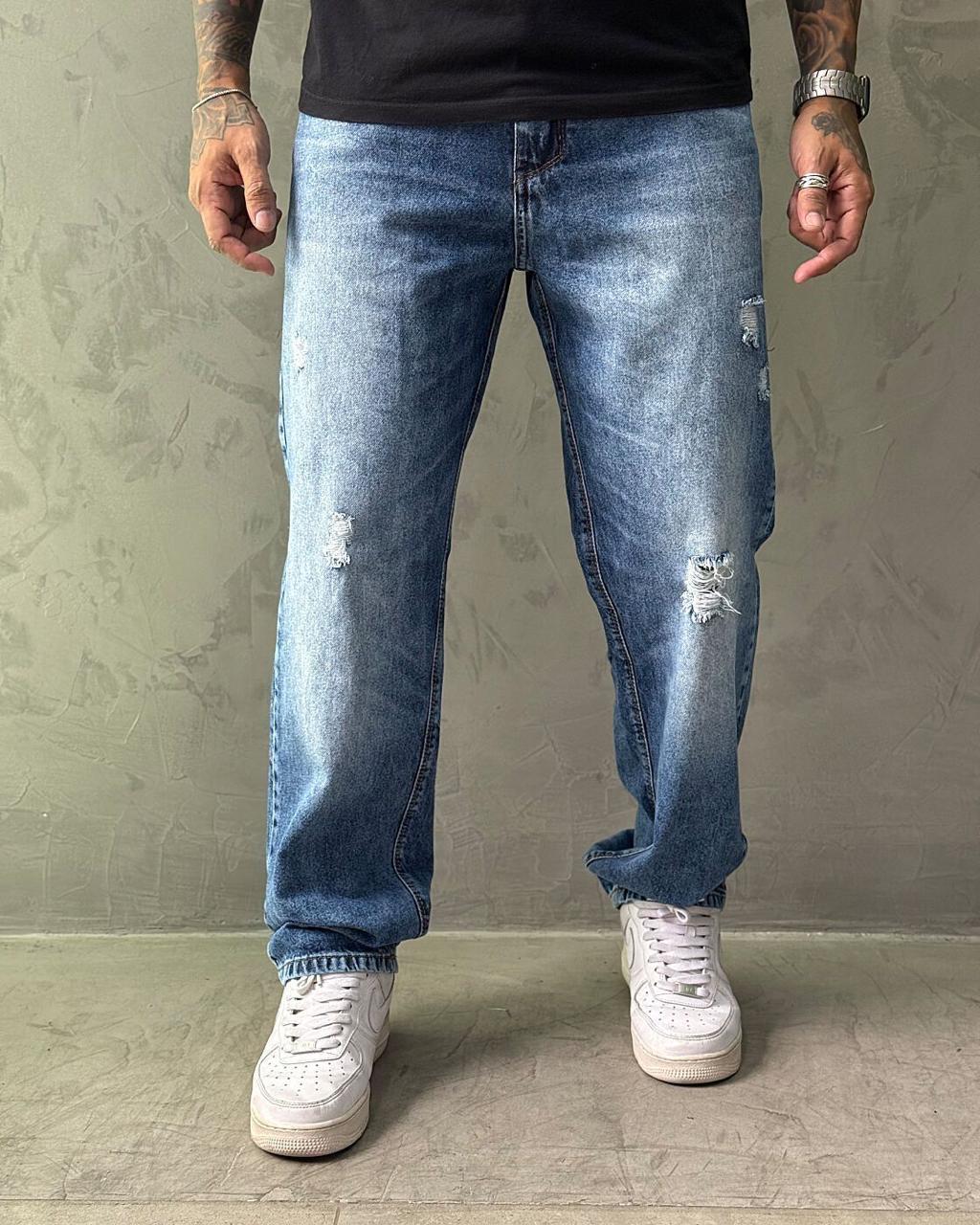 Efeito Destroyed Estratégico: Possui rasgos e desfiados proeminentes, mas localizados (principalmente nos joelhos e coxa), que adicionam um toque rocker sem exagerar na rebeldia.