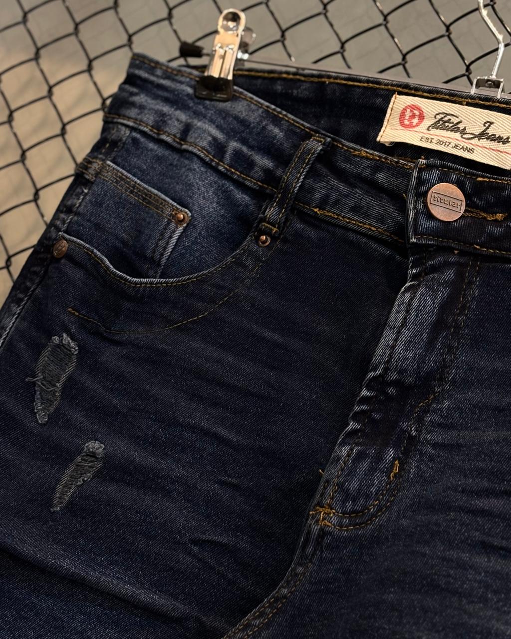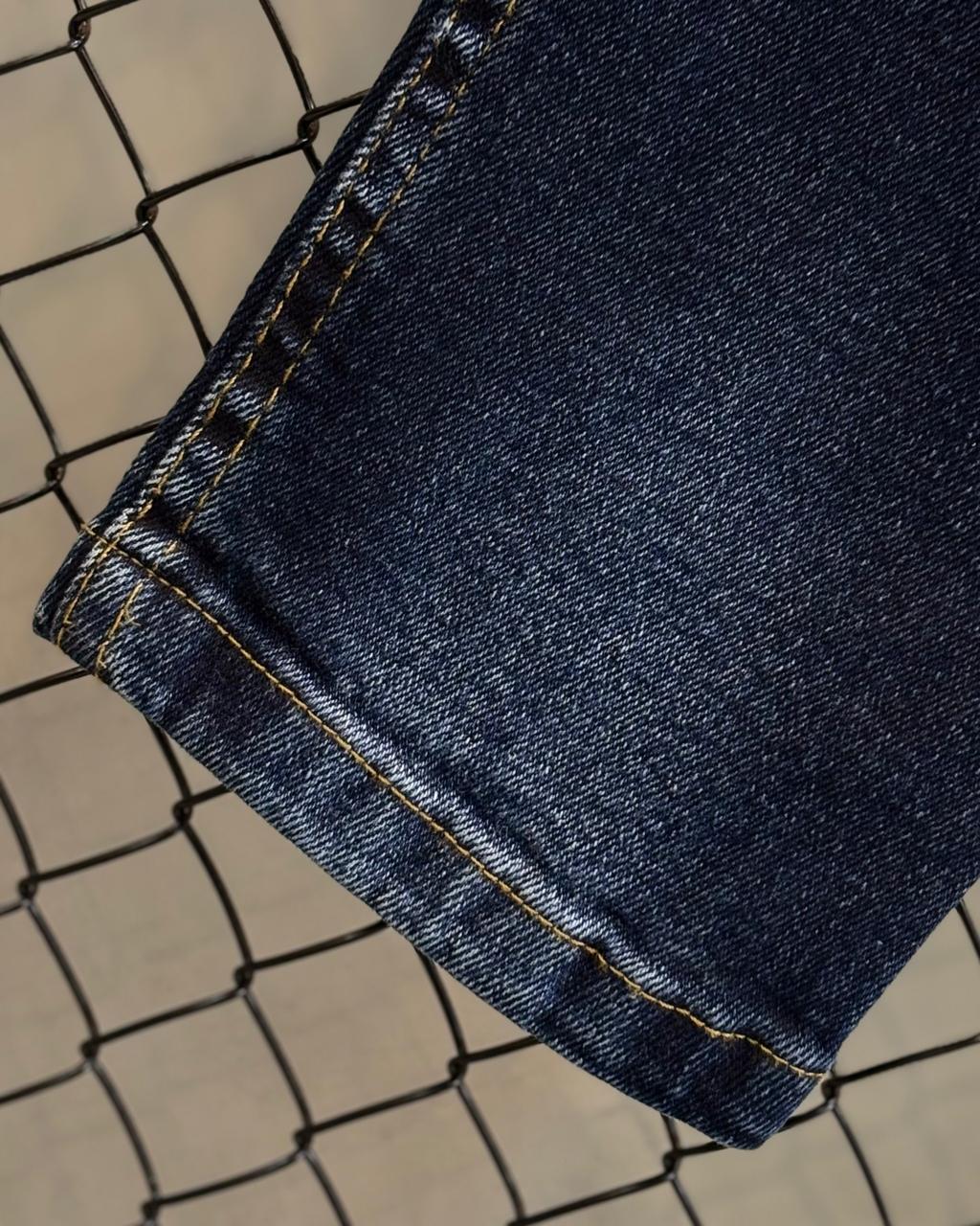 Lavagem Dark Wash Premium: O tom azul profundo apresenta áreas estrategicamente clareadas, criando uma profundidade visual que valoriza a silhueta e confere um ar moderno e dinâmico.