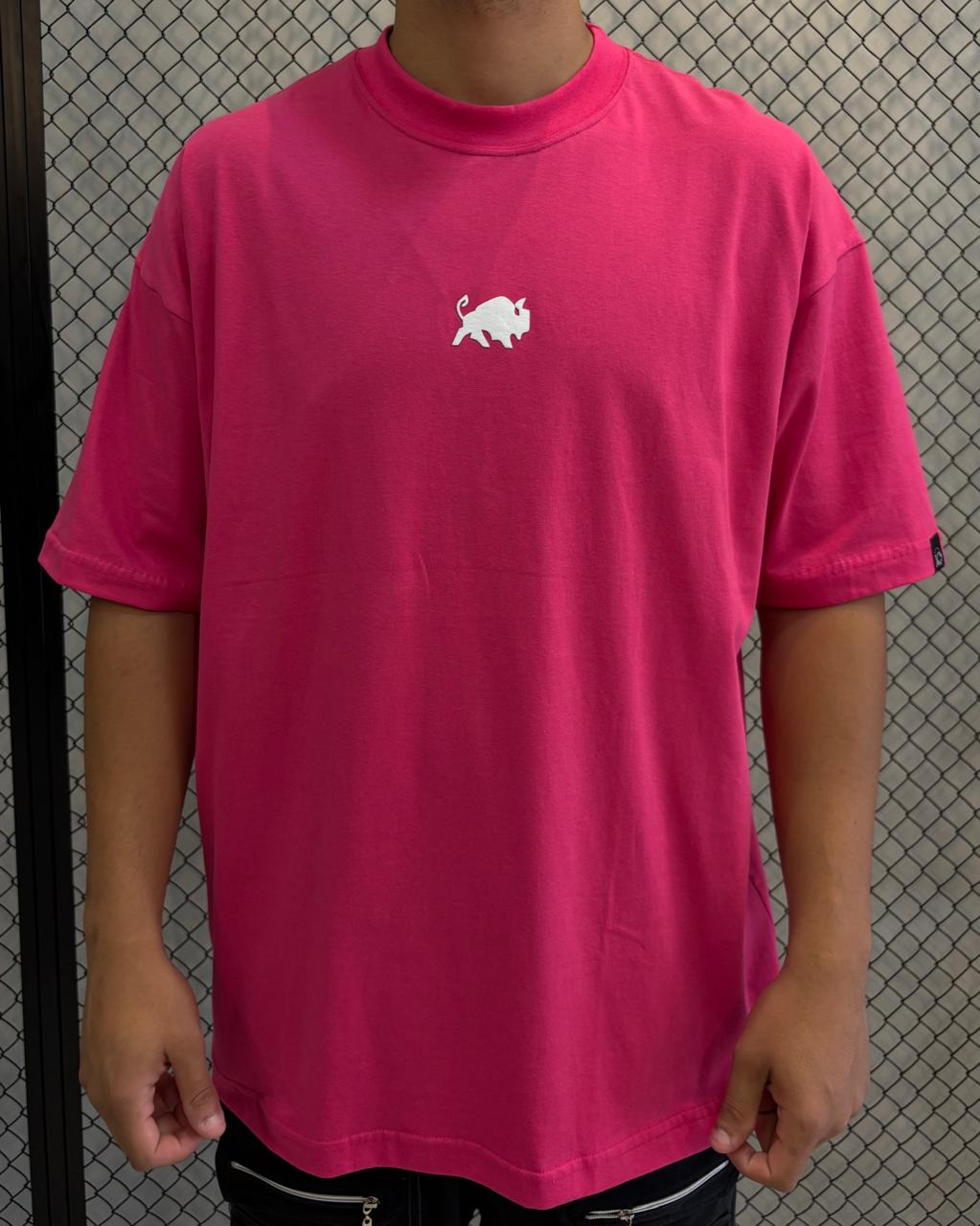 Emblema: No peito, o distintivo logo do Bisão (Bison) da Effel Culture é aplicado em branco minimalista e clean. Um símbolo de força e autenticidade que contrasta elegantemente com o pink vibrante.
