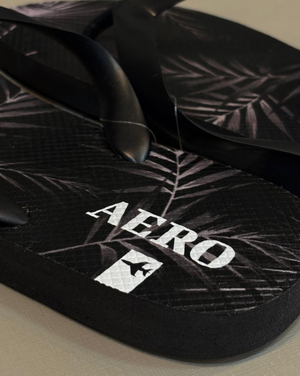 Logotipo em Destaque: Assinatura "AERO" em branco na lateral do solado, acompanhada pelo ícone do avião, garantindo a autenticidade da peça.