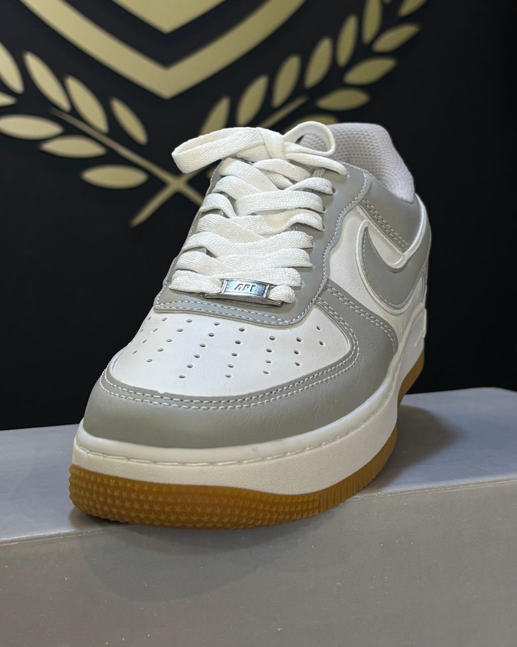 Este Nike Air Force 1 é a prova de que o minimalismo pode ser impactante. A combinação de tons neutros com o toque Gum e o detalhe dourado confere um visual premium e atemporal. Adicione este AF1 "Wolf Grey/Gum" à sua coleção e vista um ícone com uma estética limpa e sofisticada!