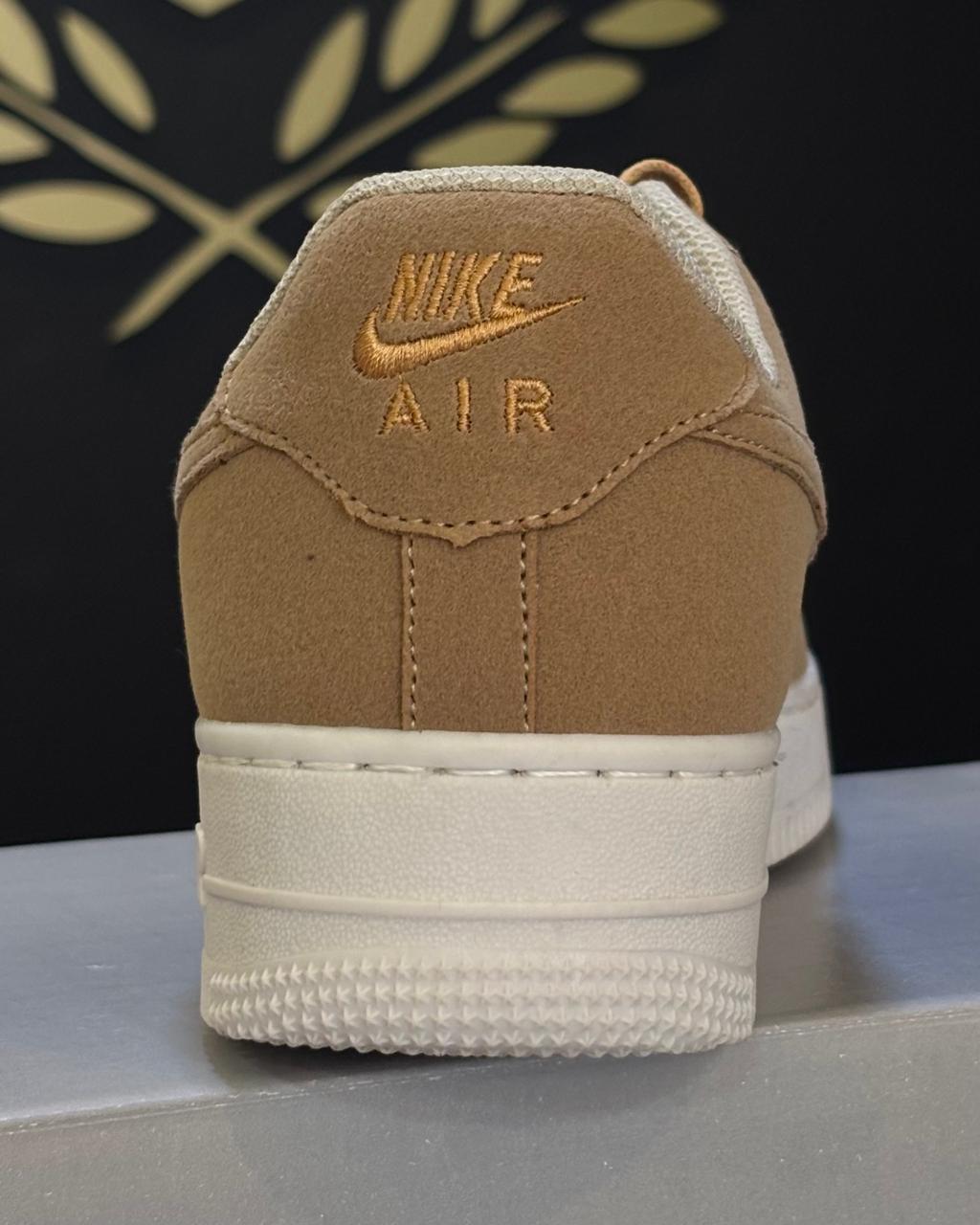 Swoosh em Destaque: O icônico swoosh da Nike aparece em um tom marrom que harmoniza com a camurça, adicionando a assinatura da marca com discrição e estilo.
