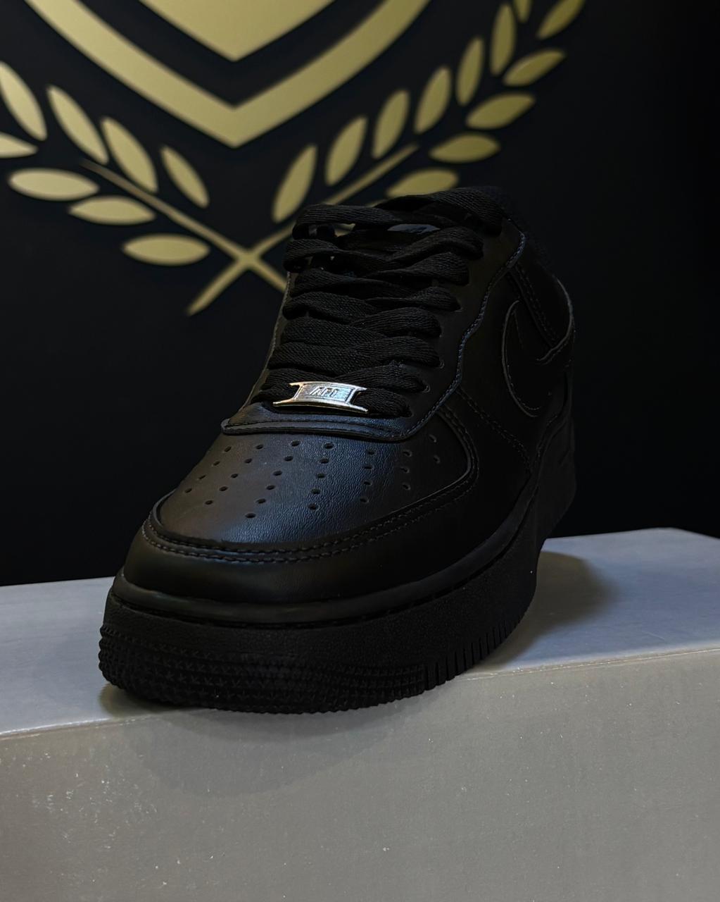 O Air Force 1 na sua versão mais imponente e atemporal. Combinando a silhueta icônica com uma coloração totalmente preta, da sola aos cadarços, tornando-o um item obrigatório no guarda-roupa de qualquer entusiasta. Este tênis se destaca pelo acabamento e pela uniformidade da cor, que confere um visual robusto e poderoso: