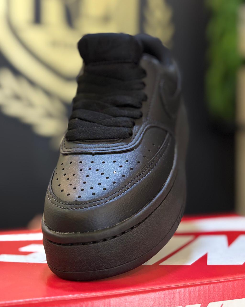 Entressola Plataforma Acentuada: O ponto central da peça. O Court Vision apresenta uma entressola significativamente mais alta, que não só aumenta sua altura, mas também confere um visual fashion e empoderado.
